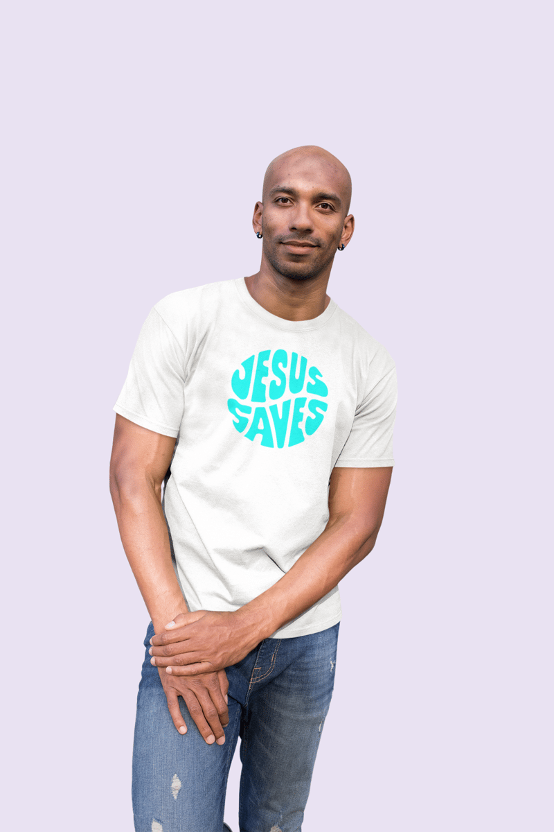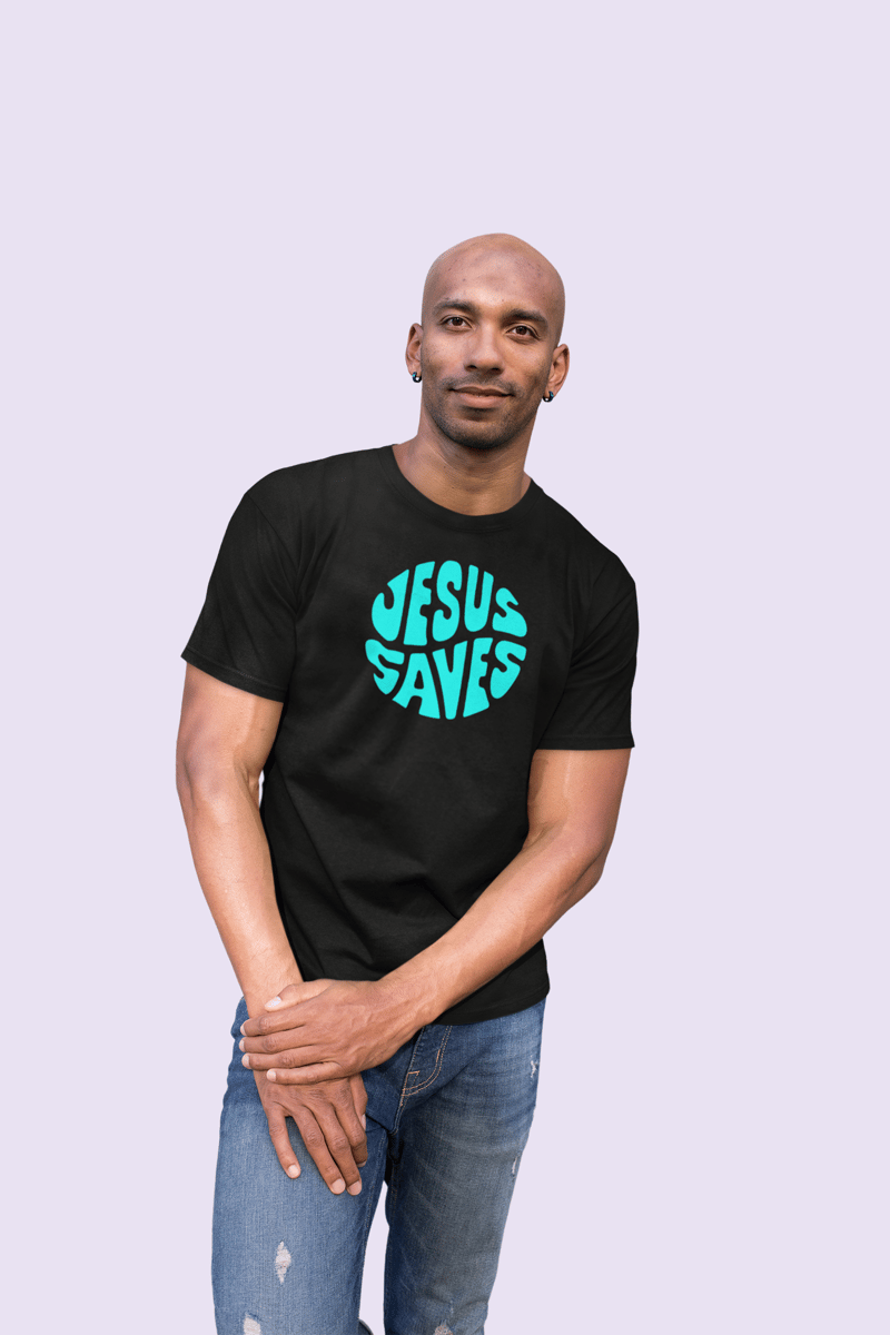 Camiseta Quality masculina, com a frase "Jesus Salva" em inglês.